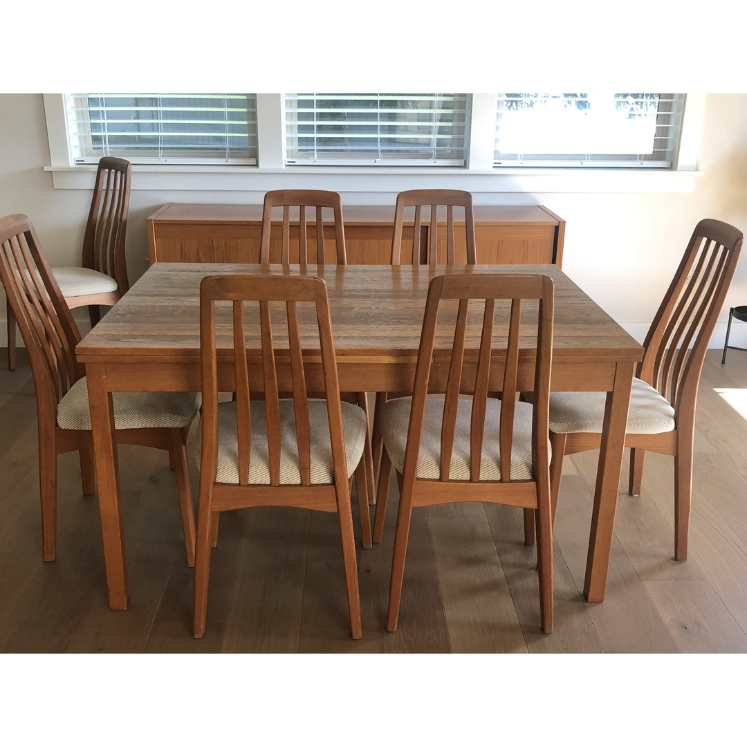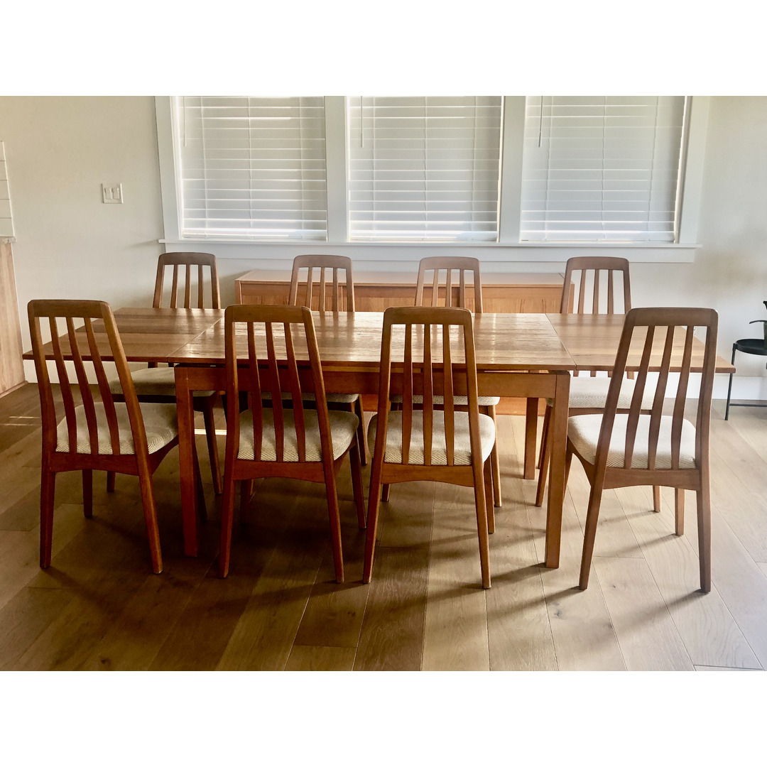Matching wood set consisting of: Table (with 2 extensions) seating 6 to 8 people 8 chairs (fabric seats) sideboard Photos available upon request 818-723-8339 -Sandpoint