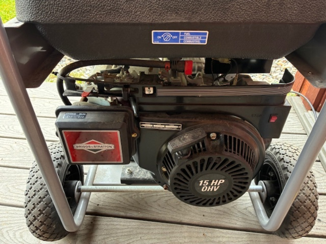 I have owned my generator for about 15 years & have used it only occassionally during power outages. Most important for me was: Primary circuits--Well pump, freezer & refrigerator; Secondary circuits-microwave, wall outlets (for charging cell phones, tablets, ISP etc. This generator can handle many other branch circuits but the ones indicated above were my primary choices. Other tidbits: * Turn on using: "push button" electric starter; keep (battery float charger supplied); plugged into a wall outlet when generator is not in use. Alternative: use pull cord Recoil Starter. * Outlets: (4) 20amp 120v (duplex); (1) 30amp 120v/240v AC Load Current: 66.6 Amps (@120 Volts); 33.3 Amps (@240 Volts) * 15HP Briggs/Stratton engine; fuel tank: 7gallons; weight: 240 lbs. * I have only used synthetic oil & ethanol-free gas (with Stabil) * Operator Manual included * IMPORTANT: The buyer needs to know a "transfer switch" will be needed to feed generator into the branch circuits (the main panel) to use & and a disconnect at the main panel from the electric service provider. If you DO NOT already have this, only a QUALIFIED Licensed Electrician should do these things if desired. Otherwise, use of the five outlets are your only alternative (with extension cord(s) (generator outside when being used). NOTE: pickup only (in Sagle) Box made for this generator is $100.00 if customer wishes to purchase it. Always housed in shop (when not in use) except in the last two years stored under a covered deck in the weather protected & foam board (sound dampening) "box" I built to house the generator.